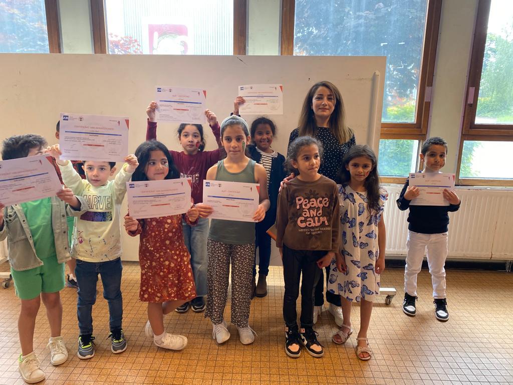 Zondag 28 mei 2023 – De voorbije week behaalden 350 kinderen in Brussel en 100 kinderen in Vlaanderen het VUB-ALEF certificaat voor het volgen van Arabische taalles. Een nieuw curriculum met aangepast lesmateriaal, ontwikkeld door de Vrije Universiteit Brussel (VUB), ondersteunt het initiatief. De getuigschriften werden plechtig overhandigd tijdens een ceremonie. Sinds 2016 organiseert de VUB, in samenwerking met GO! Scholengroep Brussel, Arabische taallessen als naschoolse activiteit voor kinderen van zes tot vijftien jaar via ALEF. Het programma is toegankelijk voor kinderen met Arabisch als moedertaal, maar ook voor diegenen die de taal willen leren.