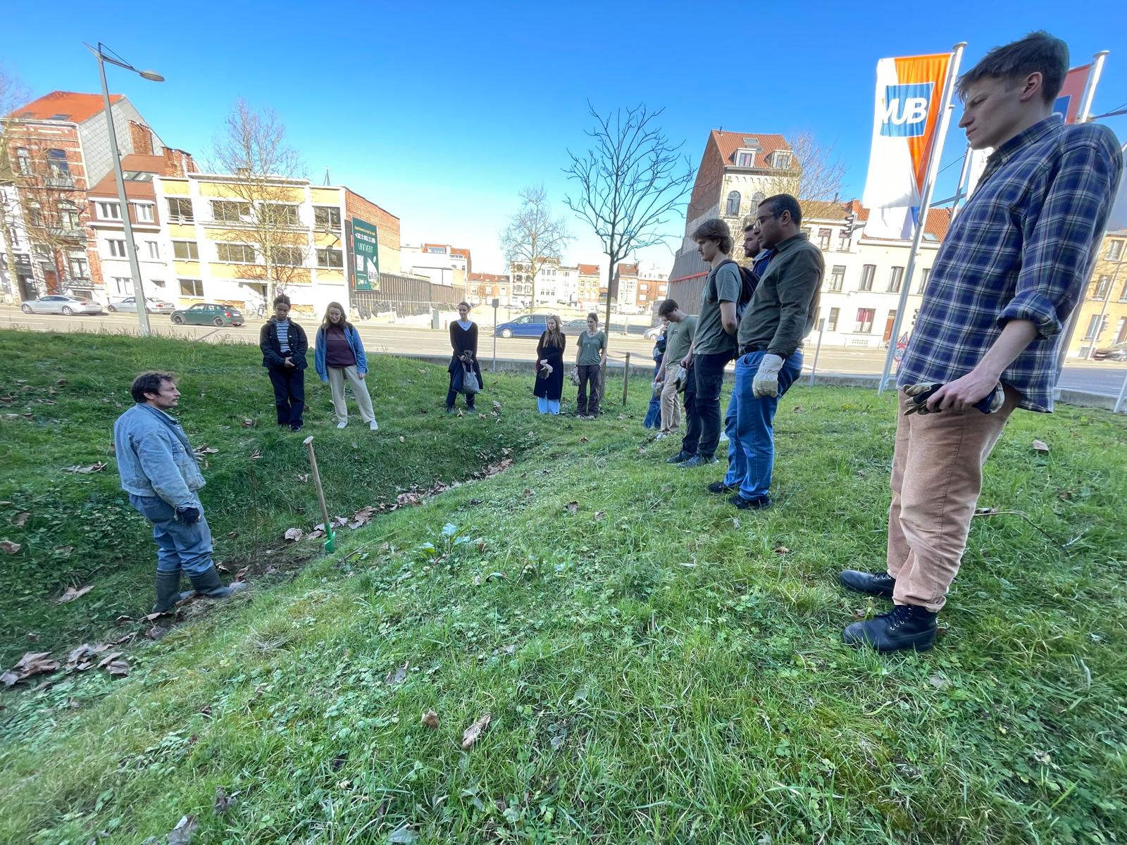 In het kader van de groenblauwe visie van de VUB en het onderhoud van de campussen in Etterbeek en Jette steken 50 vrijwilligers de handen uit de mouwen om de campussen verder te vergroenen. Door bomen en struiken te planten en tegels te wippen, maken ze plaats voor meer natuur. In Etterbeek krijgt de Triomflaan een groene make-over, terwijl in Jette de ruimte tussen gebouwen D en C wordt aangepakt.