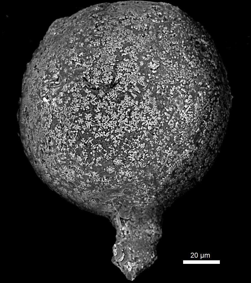 2) Impact-particle micrograph: Photographic image of the extra-terrestrial particles discovered by the research team in the Sør Rondane Mountains, near the Princess Elisabeth Station in Antarctica (credit: Scott Peterson/micro-meteorites.com)