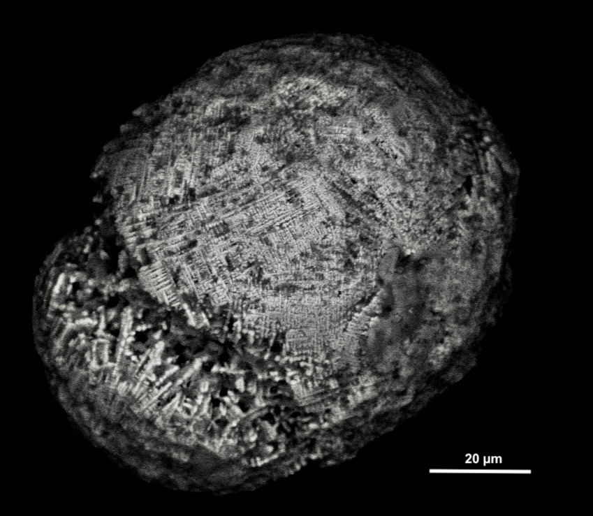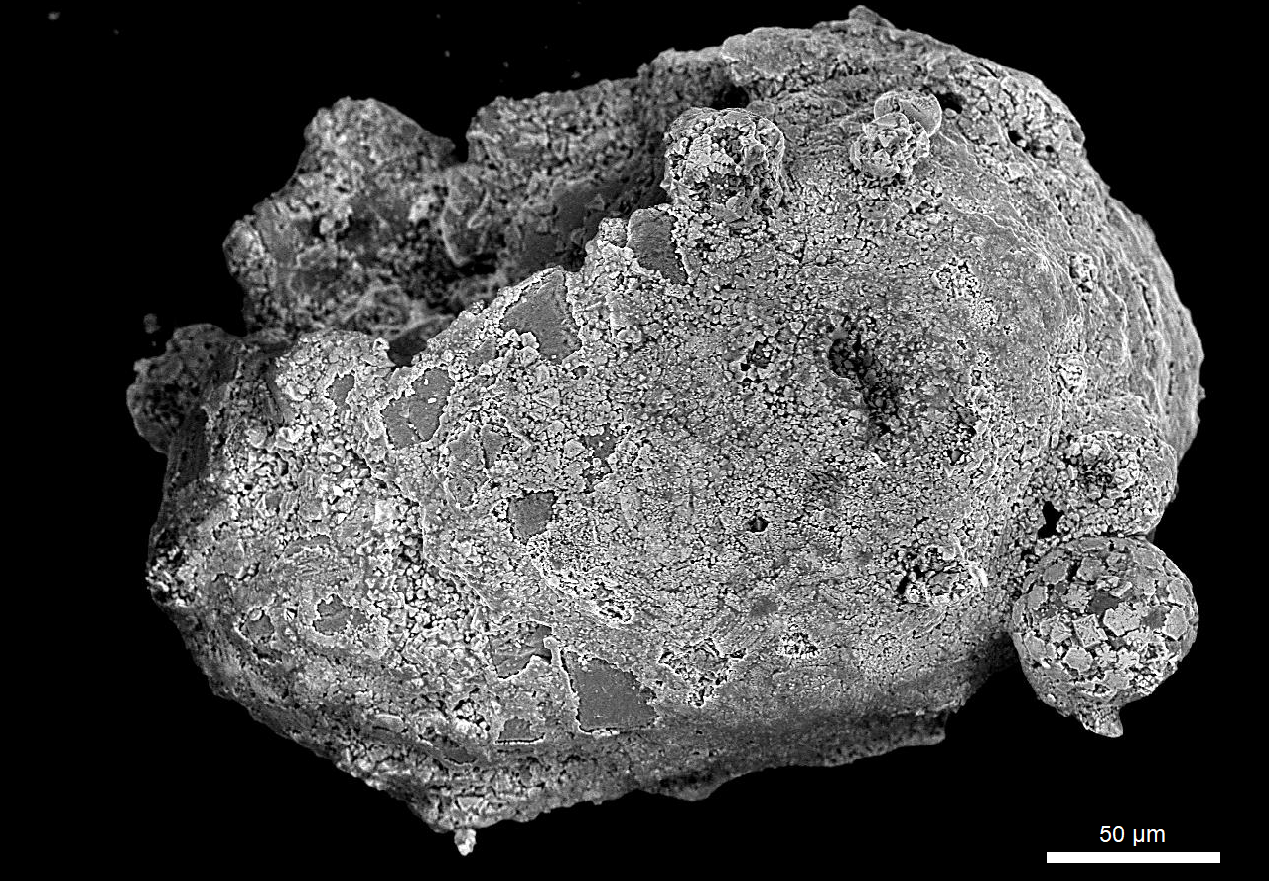 1) Impact-particle-SEM1-2-3: Microscopic image of one of the extra-terrestrial particles discovered by the research team in the Sør Rondane Mountains, East Antarctica (credit: Bastien Soens/Flore Van Maldeghem).