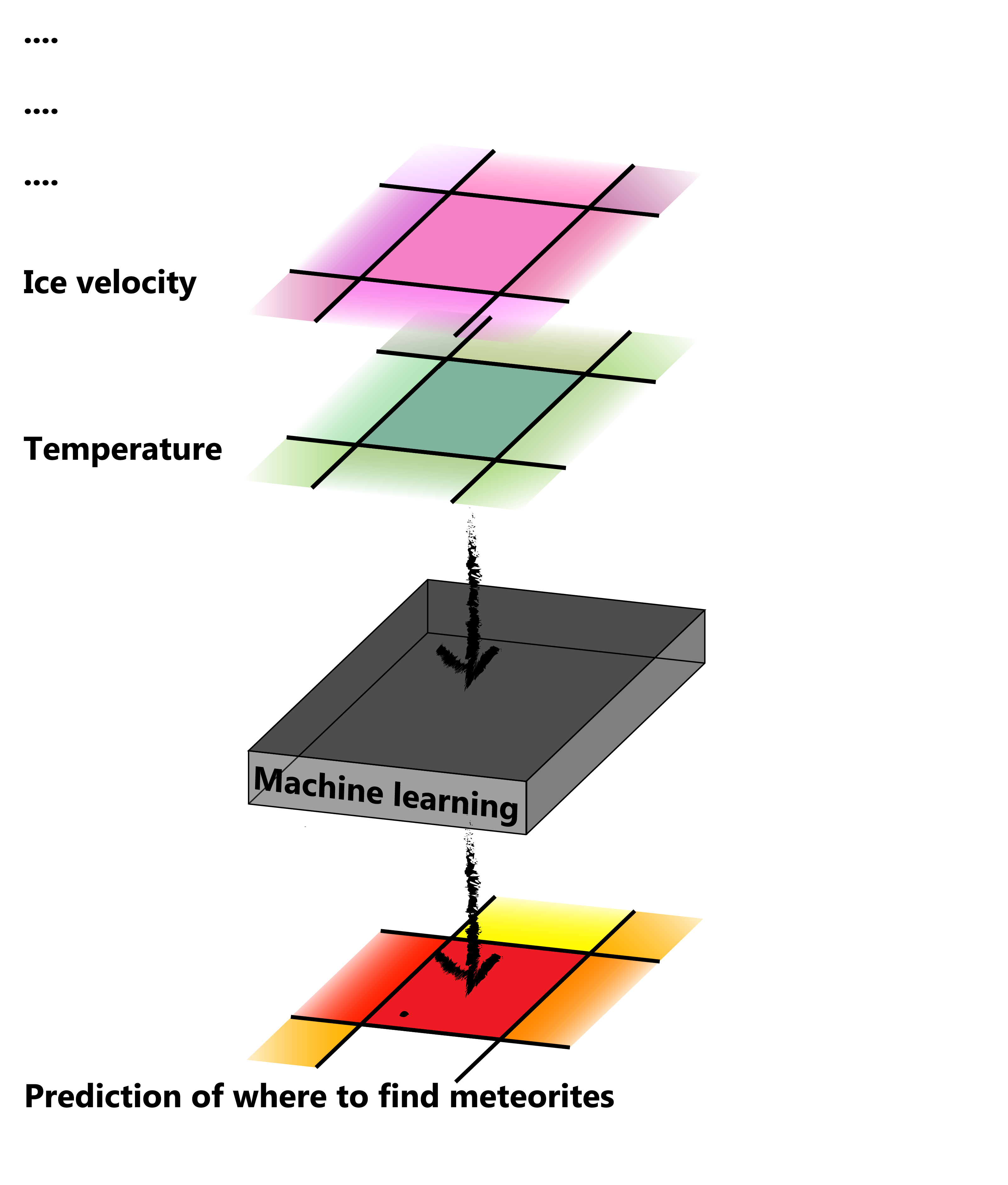 The machine-learning algorithm superimposes the various satellite observations and detects interactions between these images, which is essential for predicting the presence of meteorites. Tollenaar: