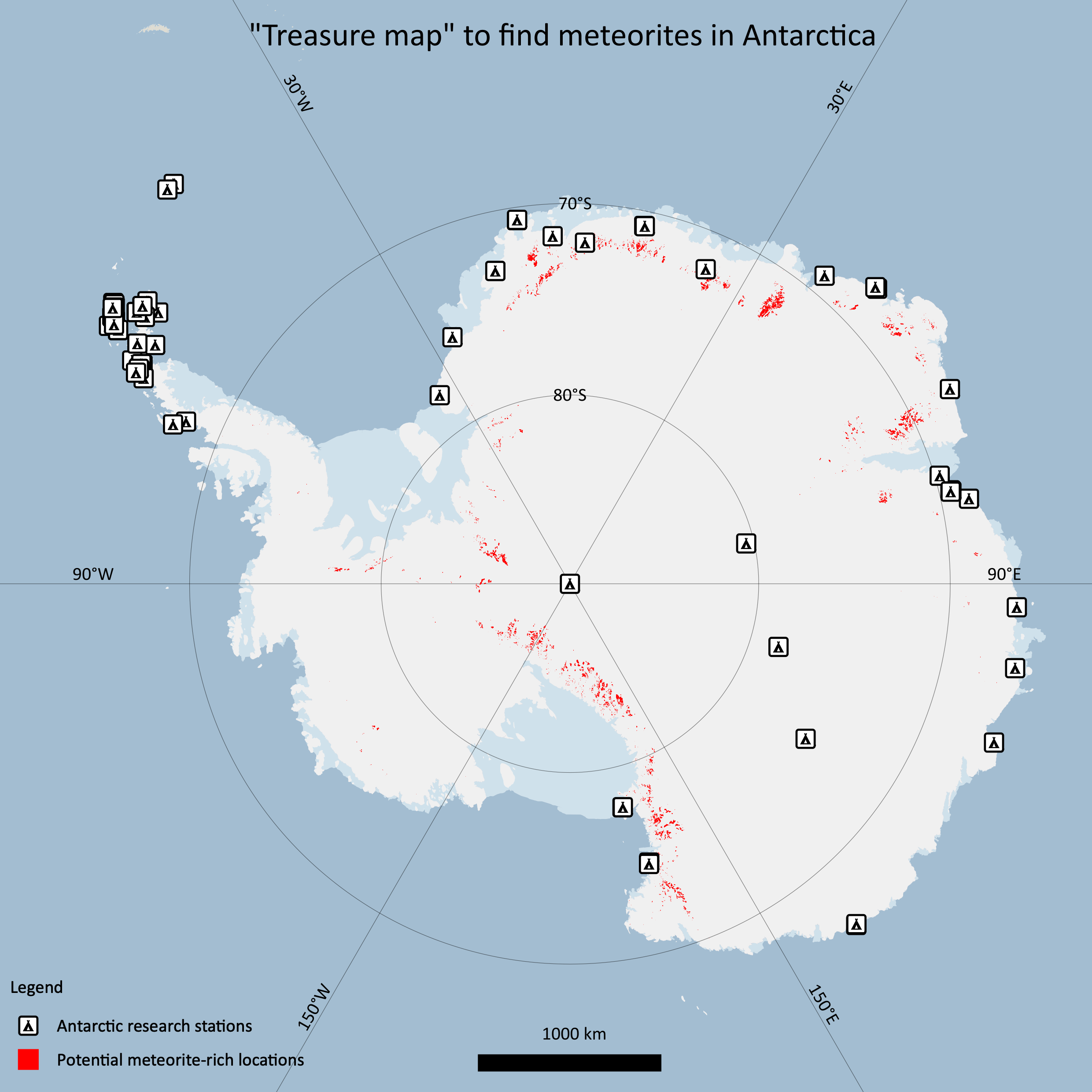 “Treasure map” to find meteorites in Antarctica. Also indicates the Antarctic