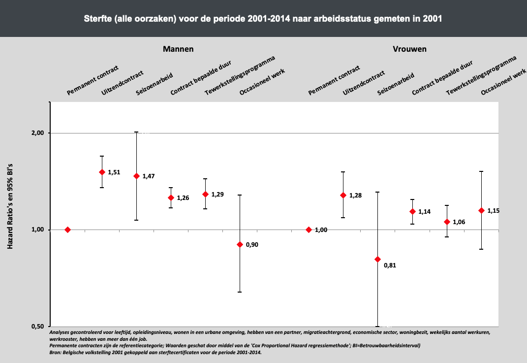 There is growing evidence that workers in temporary and precarious employment have worse mental and physical health than those in more stable and better-quality jobs. Research from VUB, just published, looked at mortality inequalities within the Belgian employee population. The researchers found that workers in specific non-permanent employment forms (such as temporary agency work) had an increased risk of mortality over the next 13 years compared to permanent workers. These mortality inequalities were particularly visible among men. The results suggest that special attention should be paid to monitoring and, eventually, improving the health and safety, employment conditions and prospects of workers in precarious and temporary jobs.