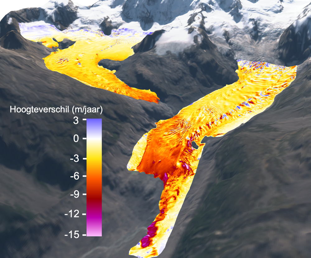 Van Tricht: “To determine the mass balance, it was crucial to take the ice flow into account, which was the focus of our recent study. In it, I showed that with this new technique, we can obtain similar results to those obtained with the glacier stakes. Ultimately, I think it should be possible to obtain similar results from satellites, although the resolution will have to be increased.”