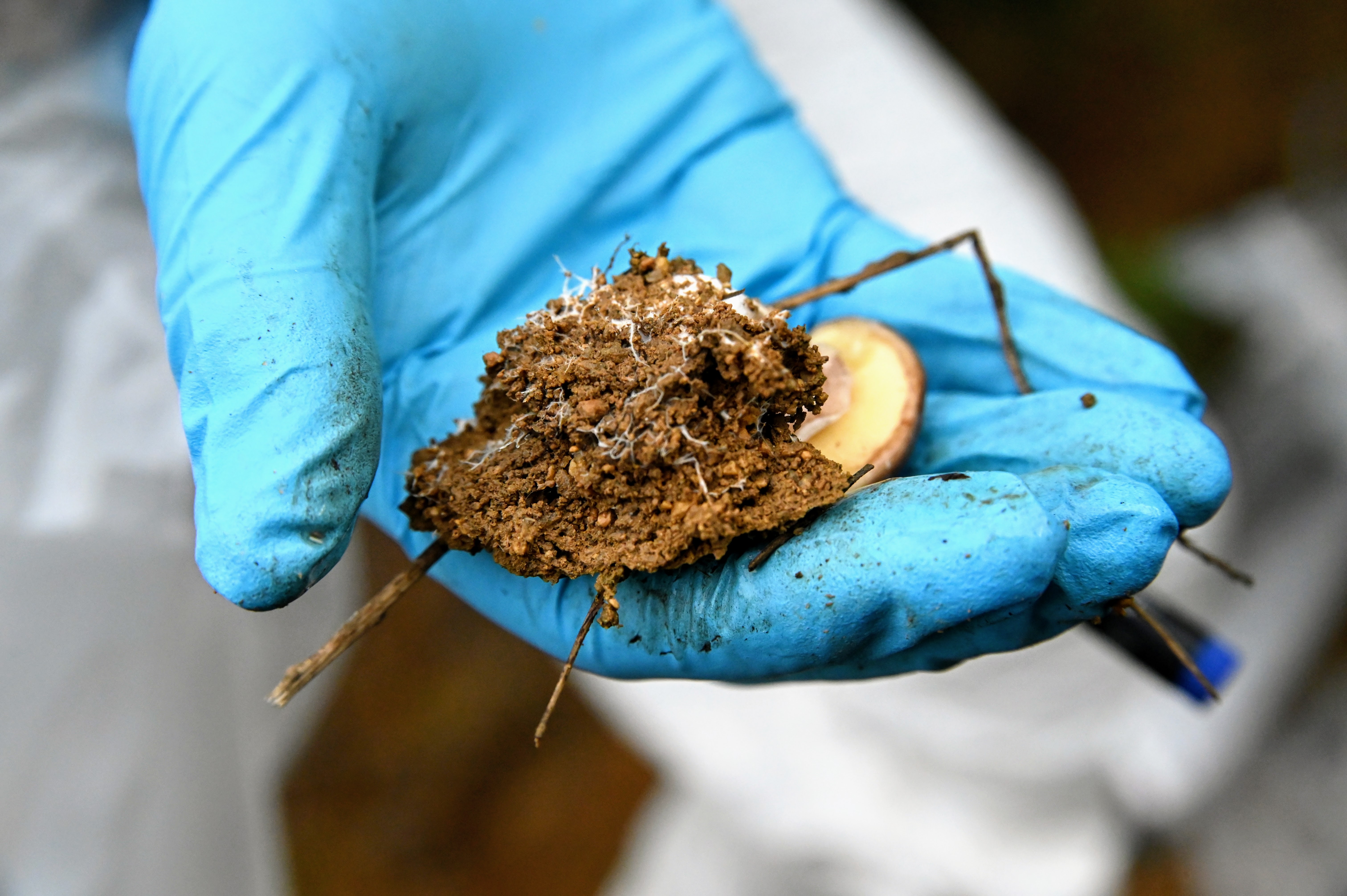 Ruytinx: “Eigenlijk maken we onze moderne landbouwgewassen lui. Doordat ze opgroeien in een door pesticiden beschermde omgeving en ze voedsel toegediend krijgen door bemesting, kunnen ze zich nog maar met moeite aan veranderende omstandigheden aanpassen. Vooral omdat ze hierdoor in grote mate de capaciteit hebben verloren om zich te gaan verbinden met een ondergronds schimmelnetwerk. Want waarom zouden ze de schimmels met koolstof voorzien als ze hun diensten niet nodig hebben.