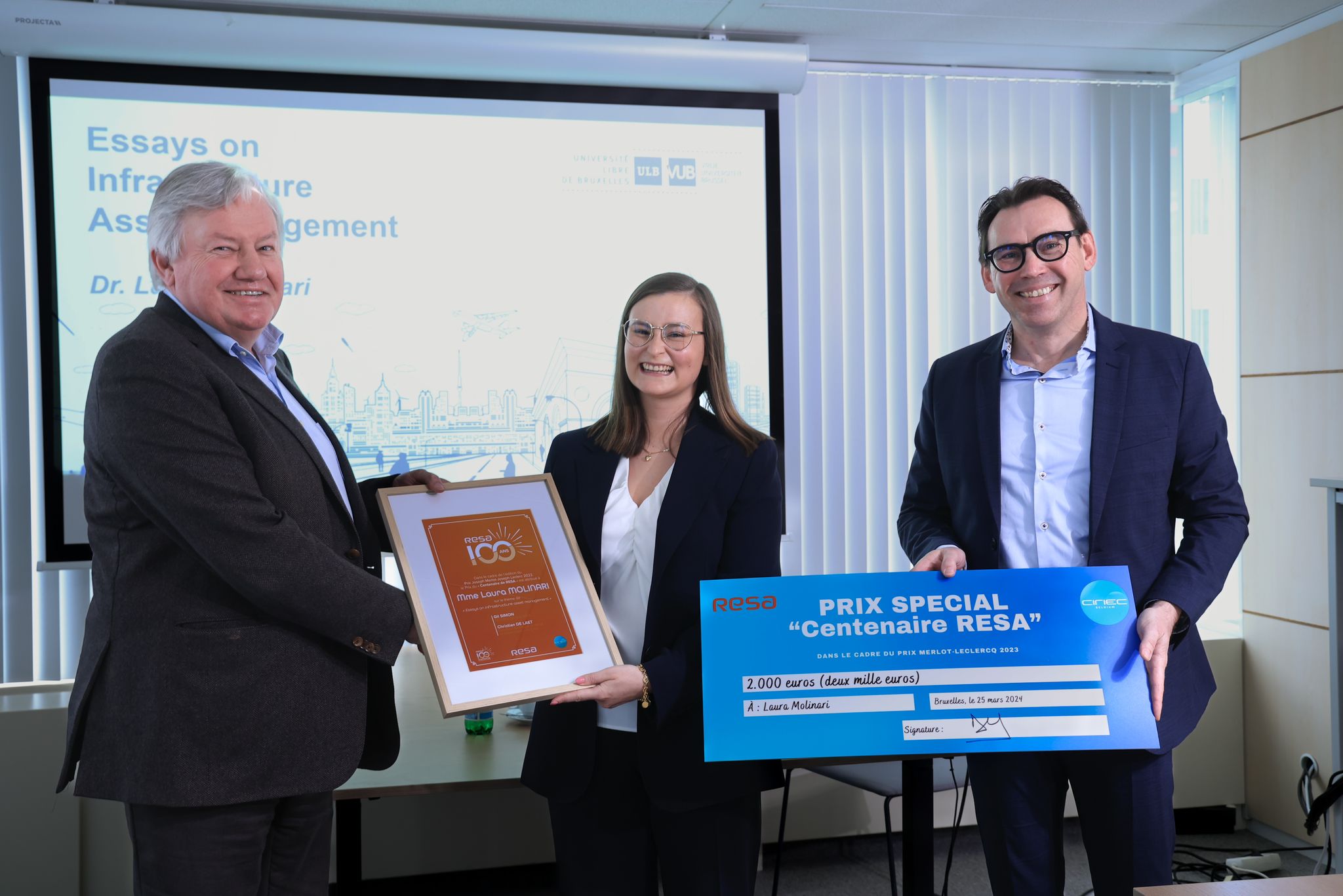 Laura Molinari, titulaire d’un doctorat et rattachée à la Faculté des sciences sociales de la Vrije Universiteit Brussel (VUB) et à la Solvay Business School, a obtenu le Prix pour le Centenaire de RESA pour sa thèse de doctorat intitulée « Essays on Infrastructure Asset Management ». Cette distinction lui a été remise dans le cadre du Prix Joseph Merlot – Joseph Leclercq, une initiative de la section belge du CIRIEC.