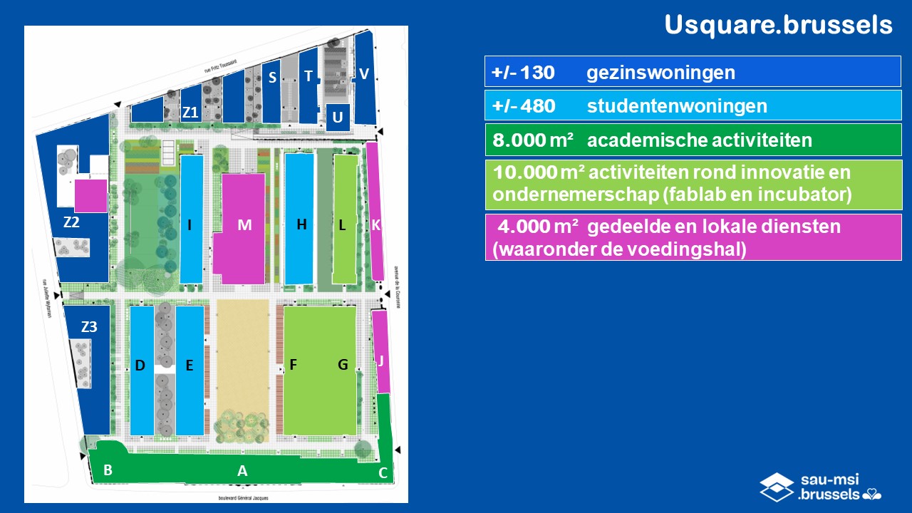 The Brussels Regional Government has tasked the Urban Development Corporation (SAU) with overseeing the conversion of the former barracks, in close collaboration with the universities ULB and VUB. The project has been given the name Usquare.brussels.