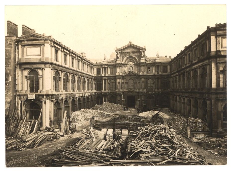 Hoe kunnen circulaire bouwpraktijken opnieuw worden geïntroduceerd in de Brusselse bouwsector? Bij de afbraak van het Granvellepaleis in Brussel in 1931 werd de gevel zorgvuldig gedemonteerd. De materialen werden gesorteerd en naar een opslagplaats gebracht om als geheel te verkopen.