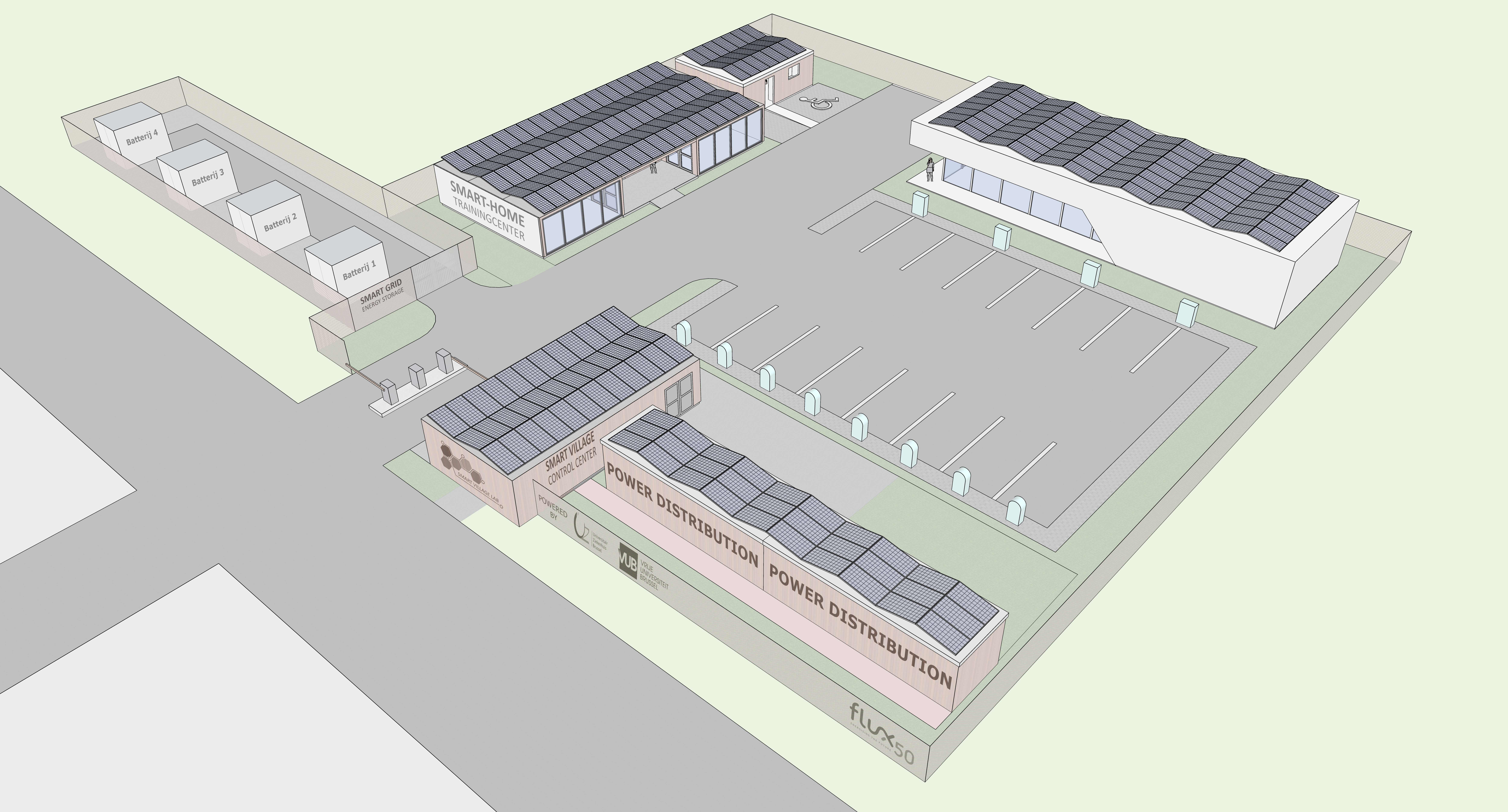 The Smart Village Lab consists of several flexible homes that are mainly used for the development of intelligent systems that allow a home to be managed smartly and sustainably. The homes will exchange electrical and thermal energy via a smart energy grid, to which collective energy systems such as neighbourhood batteries and collective charging infrastructure for electric cars are connected.