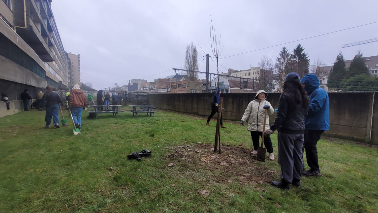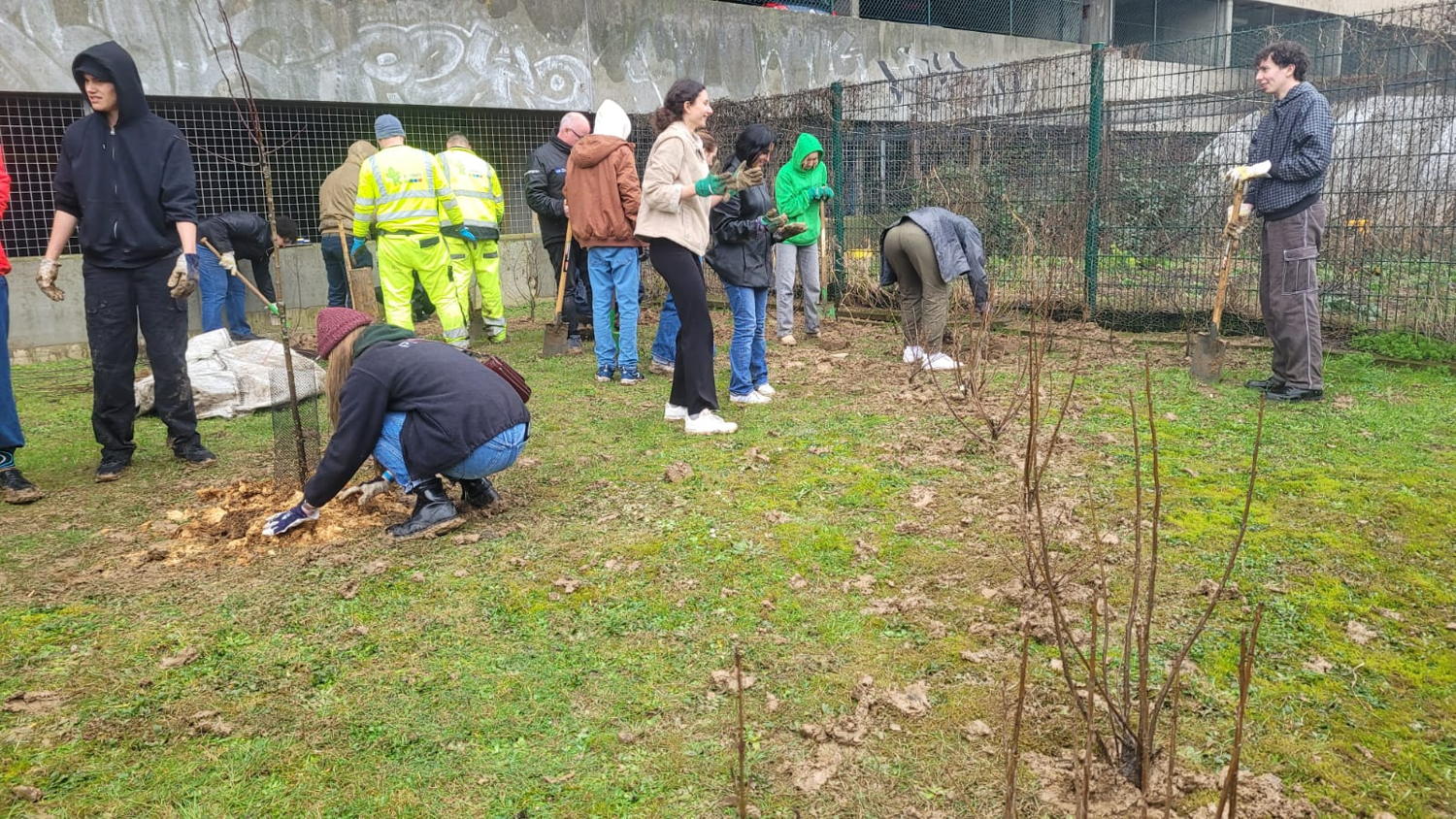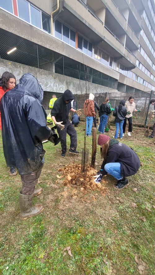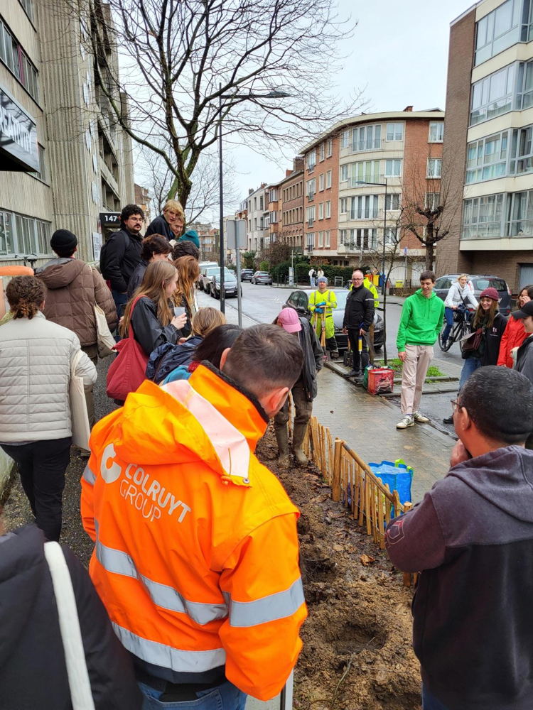 Woensdag 14 februari 2024 – Op Valentijnsdag plantten studenten en personeel van de Vrije Universiteit Brussel (VUB), samen met verschillende buurtbewoners, 485 bomen en struiken langs de Nieuwelaan in Elsene. De nieuwe aanplanting met diverse inheemse boomsoorten moet uitgroeien tot groene bufferzone tussen het verkeer (auto en spoorweg) en universiteitssite (woongelegenheden). Tegelijkertijd bouwt de vergroening mee aan de ecologische robuustheid en de koeltegebieden die de campuslocaties in het Brussels Hoofdstedelijk Gewest vormen. Het open burgercollectief Bûûmplanters begeleidde de plantactie.