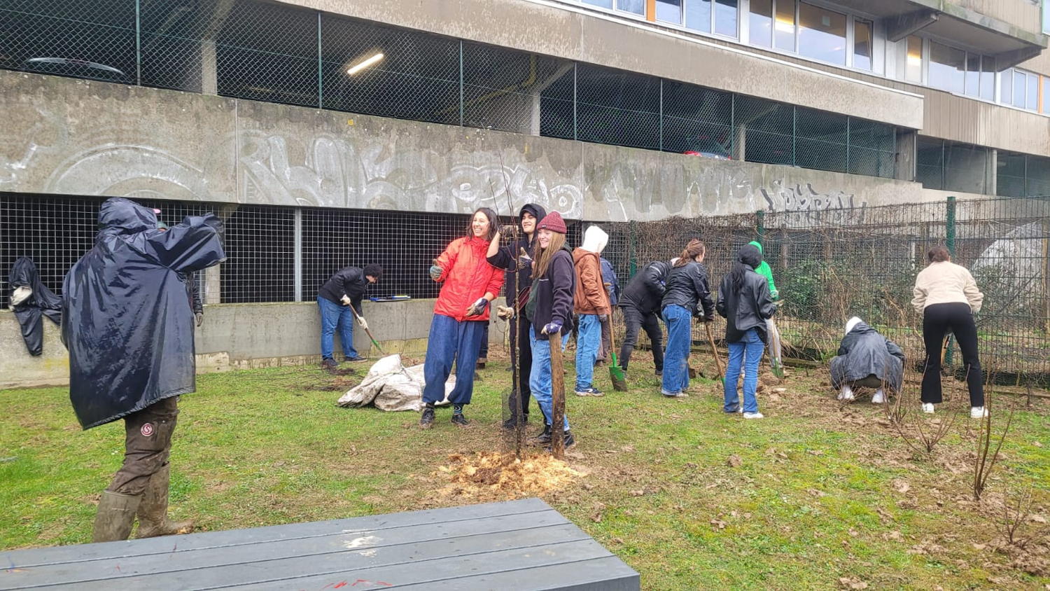 Deze regenachtige namiddag stond de liefde voor de natuur in volle bloei op de VUB. Zo’n vijftigtal vrijwilligers staken hun handen uit de mouwen om de campus ter hoogte van de studentenhuizen op de Nieuwelaan te vergroenen. In een half uur klaarden ze de klus.