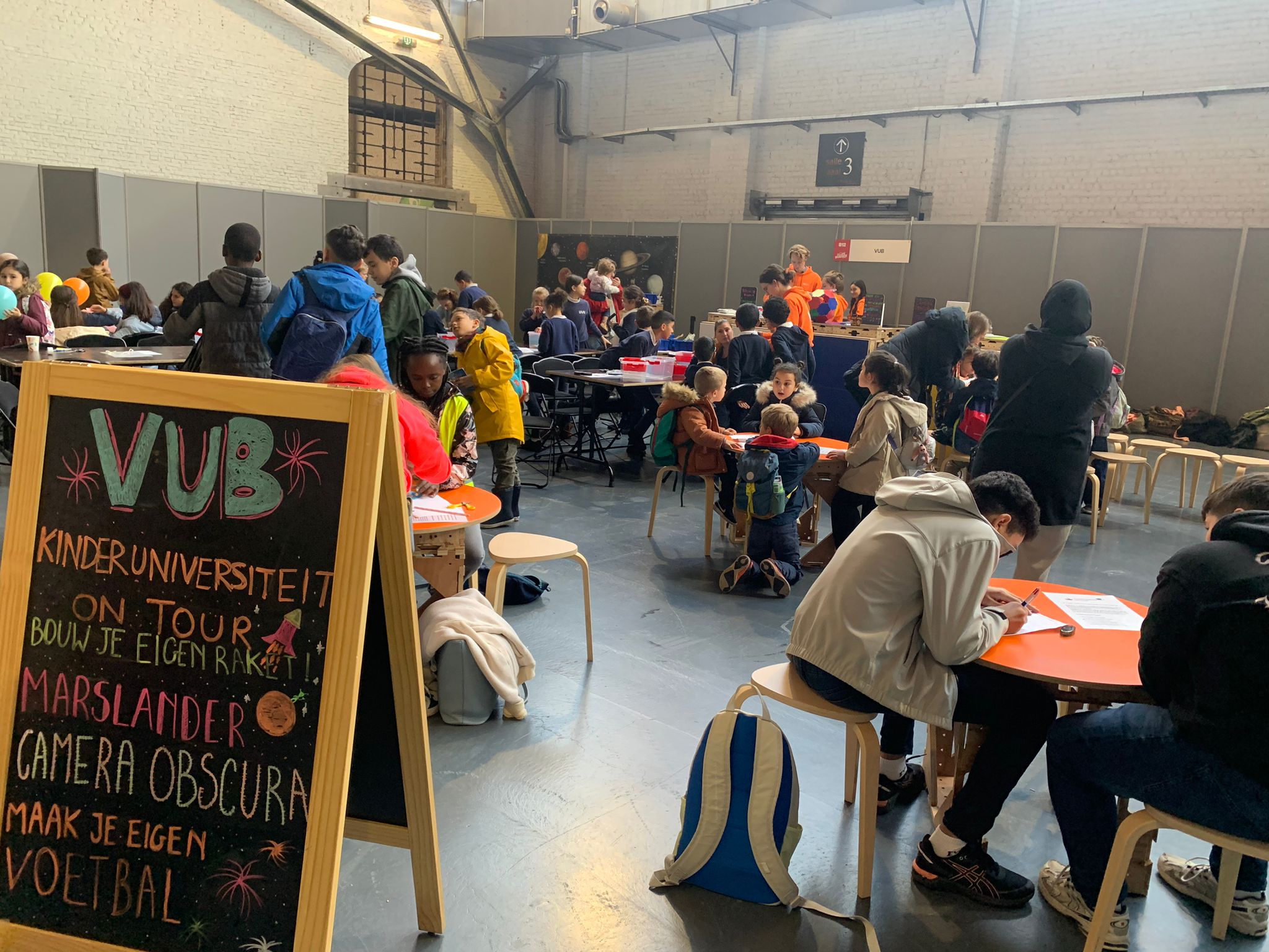 Verschillende VUB-experten, verspreid over meerdere standen, nodigen de kinderen op een leuke en laagdrempelige manier uit om kennis te maken met hun vakgebied. Zo leren de scholieren landen op Mars, voetballen met wiskunde via de VUB Kinderuniversiteit on tour, leren ze hoe ze via de geluidscamera geluid zichtbaar maken, trekken ze een exoskelet aan, gaan ze als echte ‘Crime Scene Investigators’ via de wetenschappelijke techniek ‘microfluids’ op zoek naar een misdadiger, bouwen ze samen met de VUB-experts een waterraket, kruipen ze in de huid van een LEGO-stadsplanner, experimenteren ze op een betoverende manier met licht en proberen ze uit de VUB-Crypto Escape te ontsnappen door cryptoraadsels op te lossen.