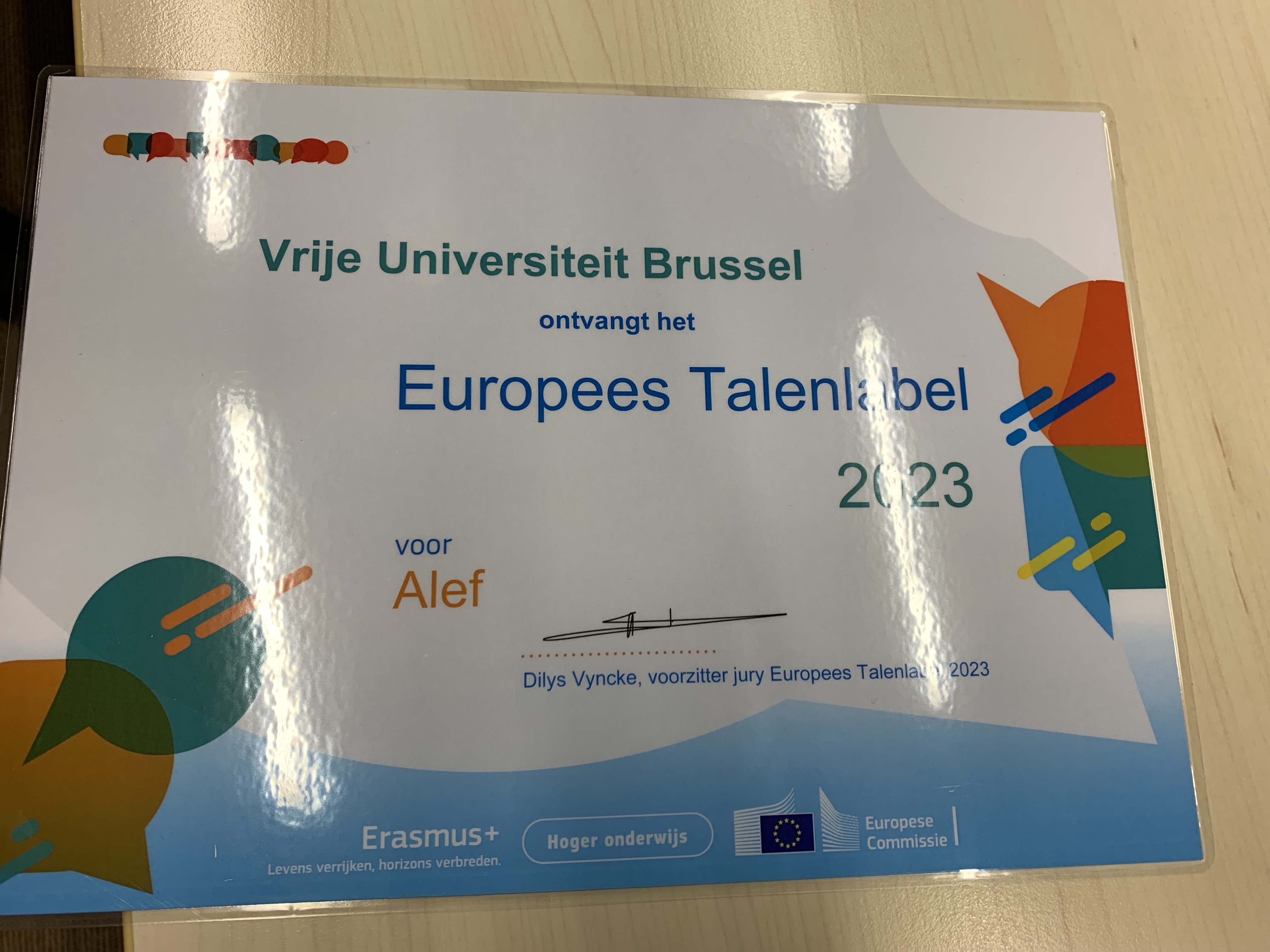 Op 11 januari ontving de Vrije Universiteit Brussel (VUB) de eerste prijs van het Europees Talenlabel voor het ALEF-programma. Dit programma organiseert extra-curriculair Arabisch taalonderwijs door VUB-taalexperts voor kinderen van 6 tot 15 jaar, in een neutrale omgeving. Het Europees Talenlabel is een initiatief van de Europese Commissie ter bevordering van vreemdetalenonderwijs in haar lidstaten.