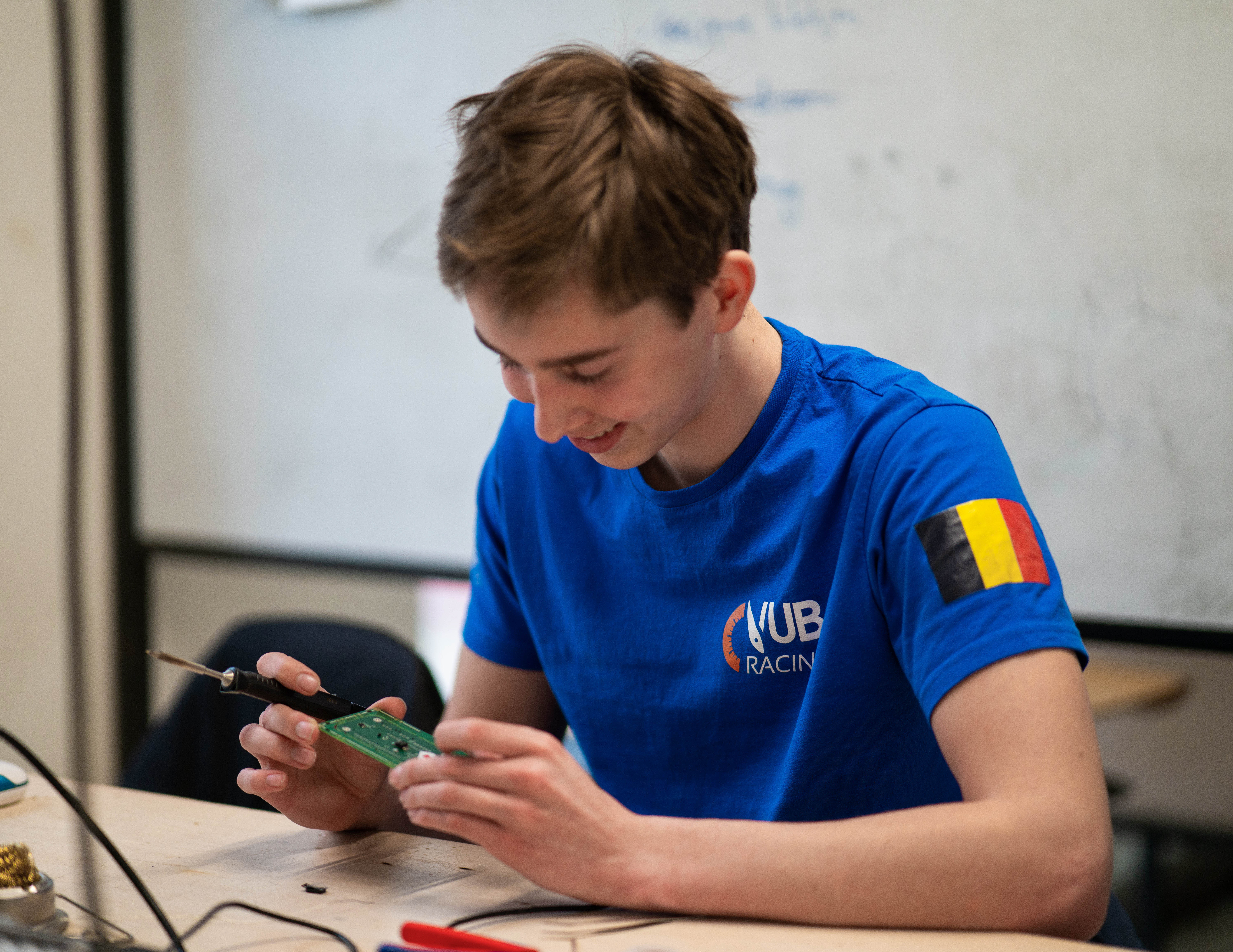 Er werken 36 VUB-studenten uit de faculteiten Ingenieurswetenschappen, Wetenschappen en bio-ingenieurswetenschappen, Letteren en wijsbegeerte, de Sociale wetenschappen en Solvay business school aan het project. “We zijn heel hard gericht op de technische aspecten waar zowel elektronica, mechanica als aerodynamica samenkomen”, zegt Salmon. “Maar er komt zoveel meer bij kijken. Zo hebben wij een student uit de opleiding Toegepaste taalkunde die zich bezighoudt met onze communicatie, studenten computerwetenschappen die werken aan ons zelfrijdend platform en handelsingenieurs die ons helpen bij het aantrekken van partners.”