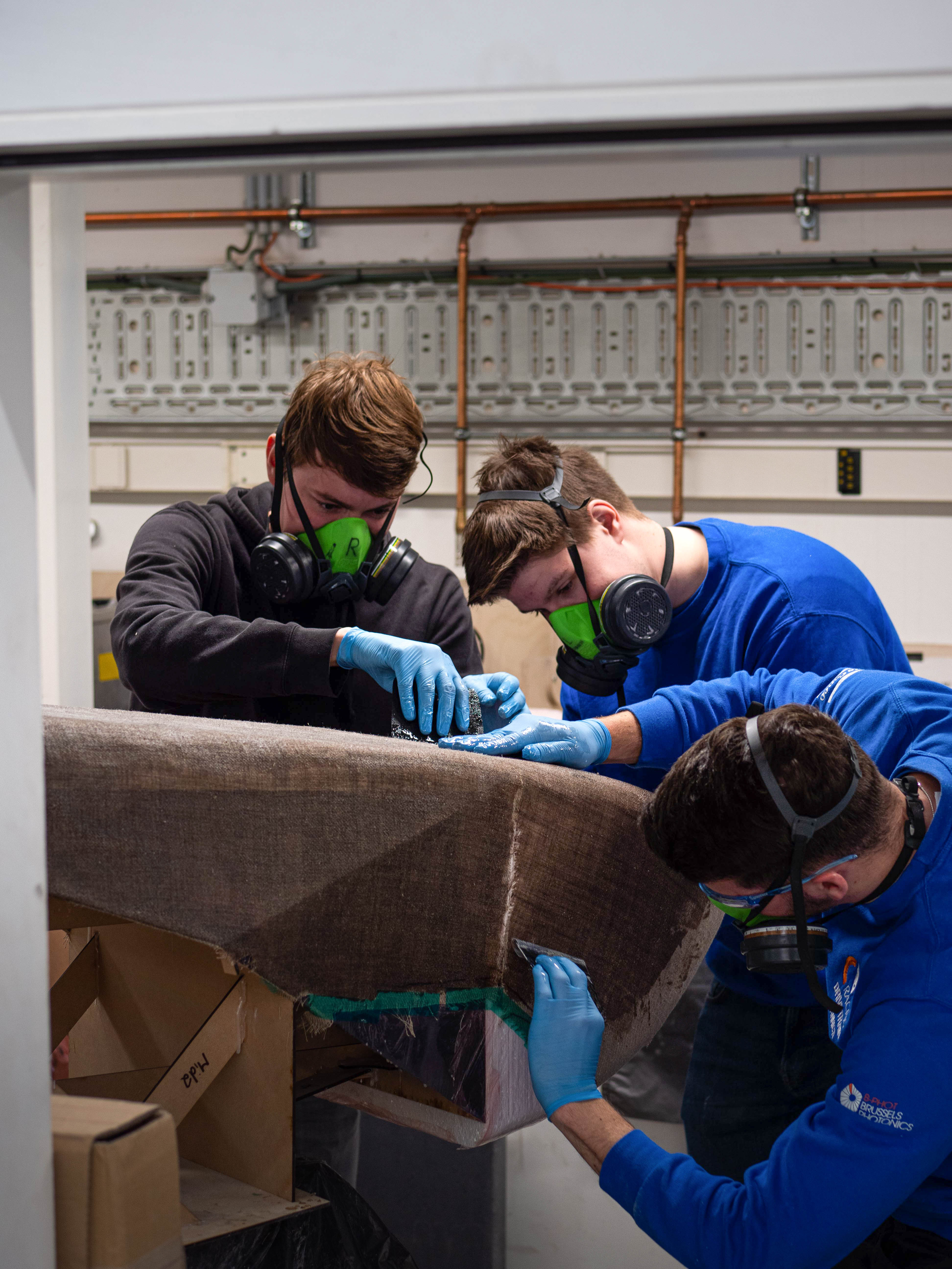 “Traditioneel maakt de autosport gebruik van carbonvezels”, zegt Salmon, de teammanager bij VUB Racing. “De productie is enorm vervuilend, met een grote uitstoot. Het materiaal is bovendien erg moeilijk recycleerbaar. Voor recyclage heb je temperaturen nodig tussen 450°C en 700 °C, in een zuurstofvrije omgeving. De uitstoot bij de productie van vlasvezels is 37 keer kleiner en ze zijn volledig biologisch afbreekbaar na opwarming tot 300 °C. Door het gebruik van bio-composieten bevorderen we de cultuur van innovatie binnen ons team. Door de grenzen van duurzame technologie op te zoeken, worden onze leden aangemoedigd creatief te denken en nieuwe oplossingen te vinden. We worden geïnspireerd om te experimenteren, te vernieuwen en geavanceerde benaderingen te ontwikkelen. Dat komt niet alleen ons raceteam ten goede, maar draagt ook bij tot de duurzame praktijken van de industrie in het algemeen. Die mentaliteit van milieuverantwoordelijkheid reikt verder dan de grenzen van ons team en beïnvloedt onze beslissingen en acties gedurende onze hele professionele carrière.”
