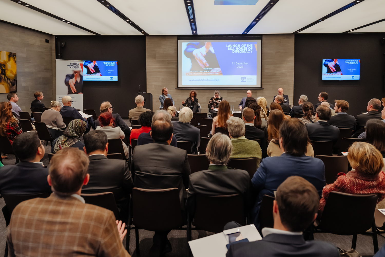 The BDA press release about the event is available here: https://brusselsdiplomaticacademy.eu/international-audience-warmly-welcomes-launch-of-the-vubs-brussels-diplomatic-academys-house-of-diplomacy/