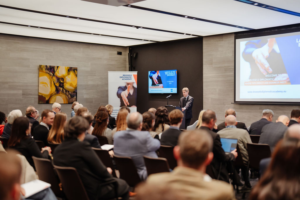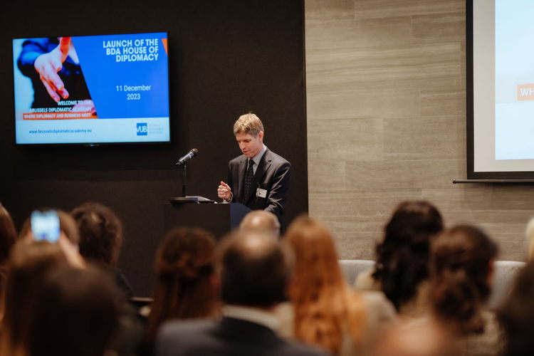 Gunter Gaublomme, director and founder of the BDA, took the floor at the launch. He spoke about the BDA’s achievements over the past 10 years and highlighted the training that it continues to provide in economic diplomacy and international business..